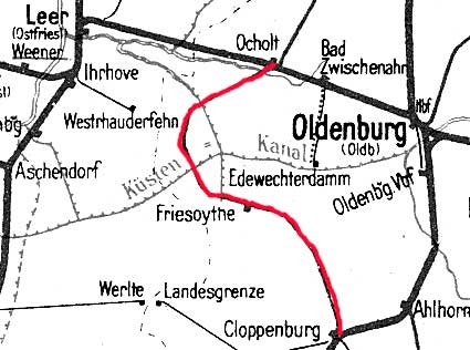 | Kleinbahn Cloppenburg - Landesgrenze Oldenburg/Preußen (Kreisbahn Cloppenburg-Landesgrenze) Spurweite 750 mm | ||