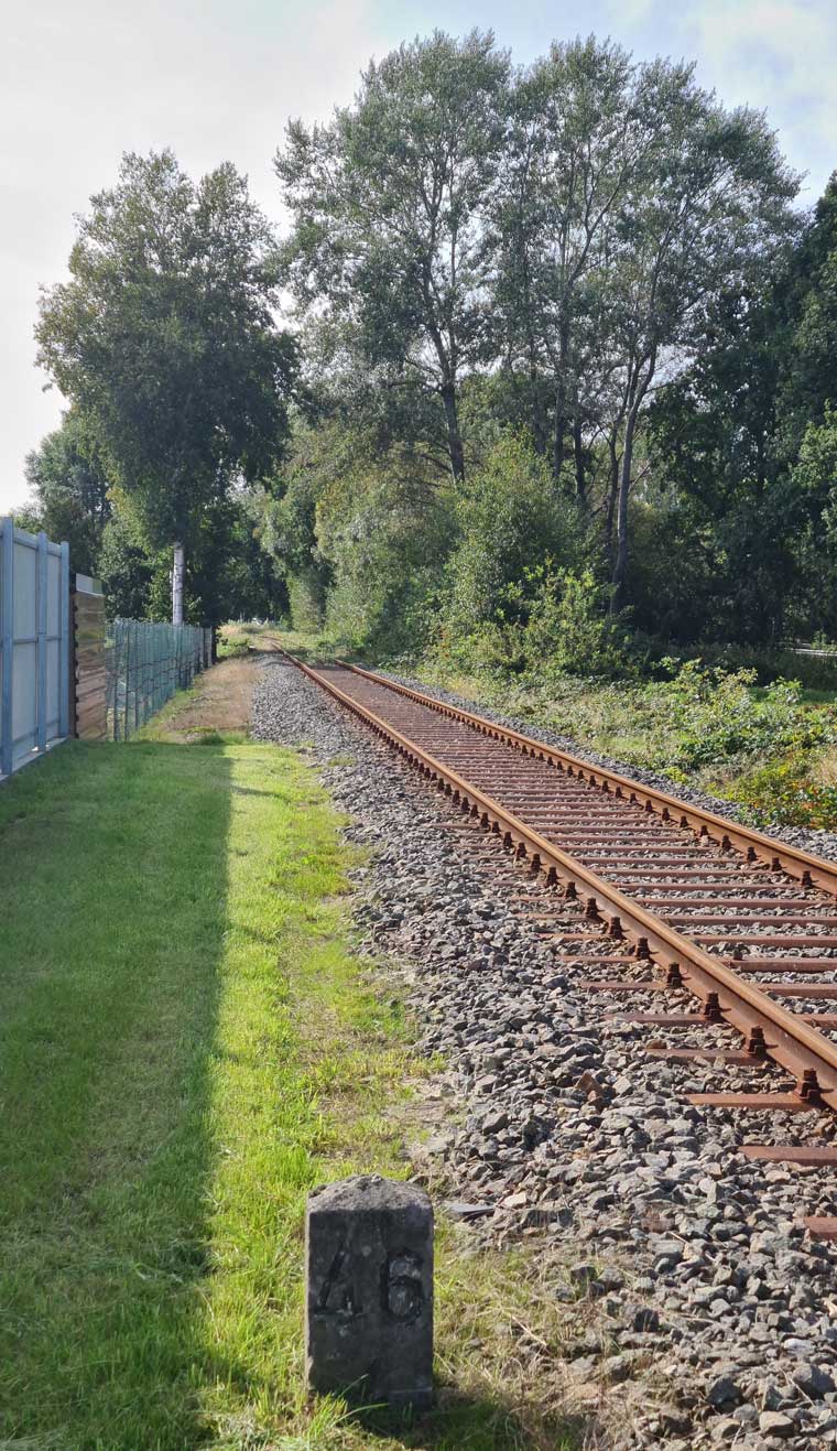 km 40,4 (Tafel), km 40,6 (Tafel) und km 40,7 (Stein) gehören zur Strecke