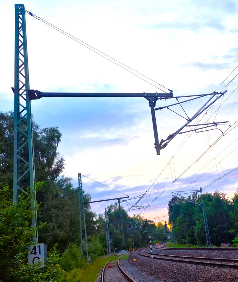 Linkss das Gleis der Strecke