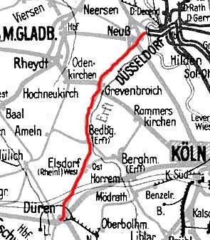 Düren 0,0 - Grevenbroich 34,22 - Neuß 49,02 - Neuß Abzw Erftkanal 50,93