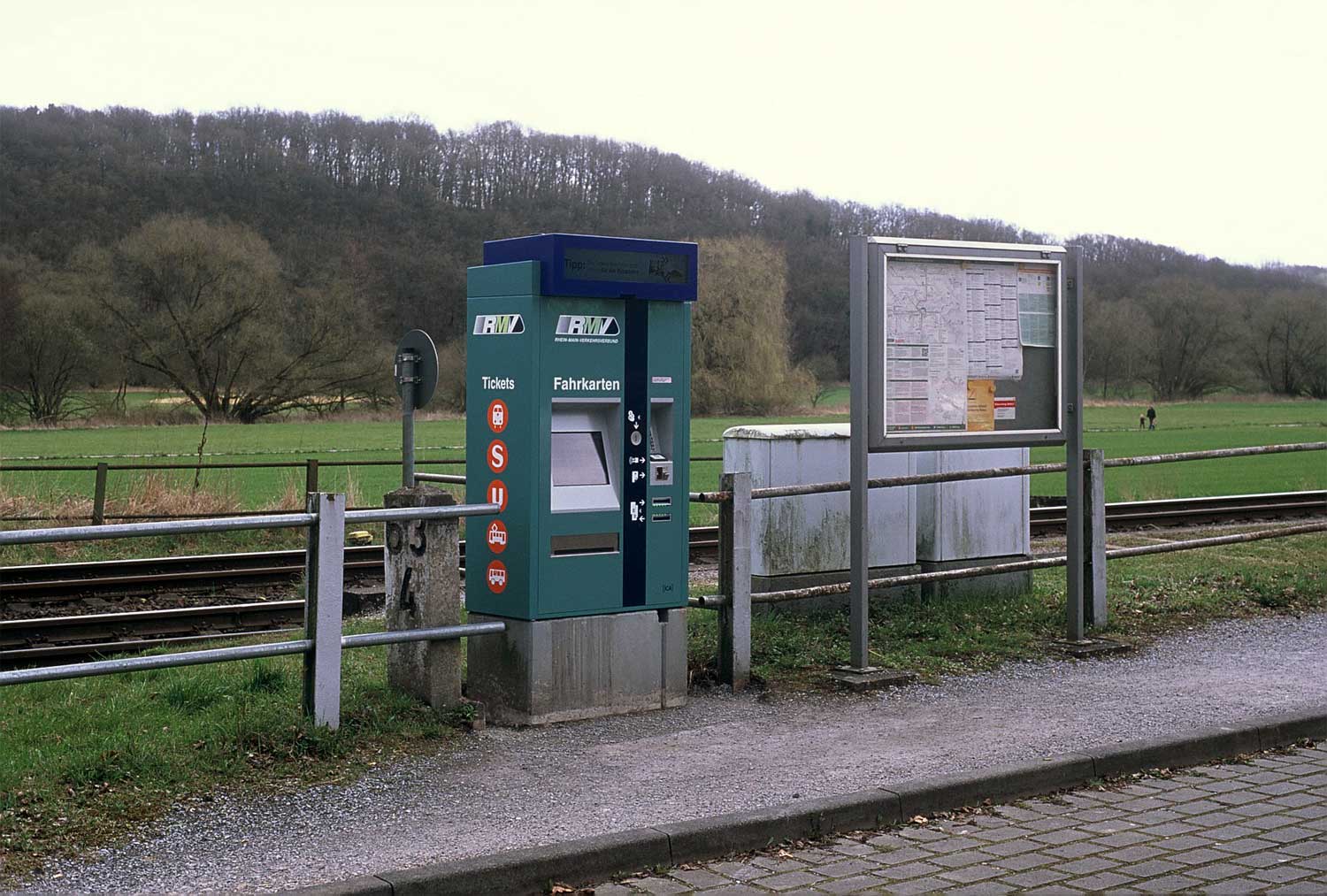 | Eschhofen | 66,47 | km 48,95 der Strecke Wetzlar 0,0 - Limburg (Lahn) 52,17 - Koblenz Hbf 103,74 |