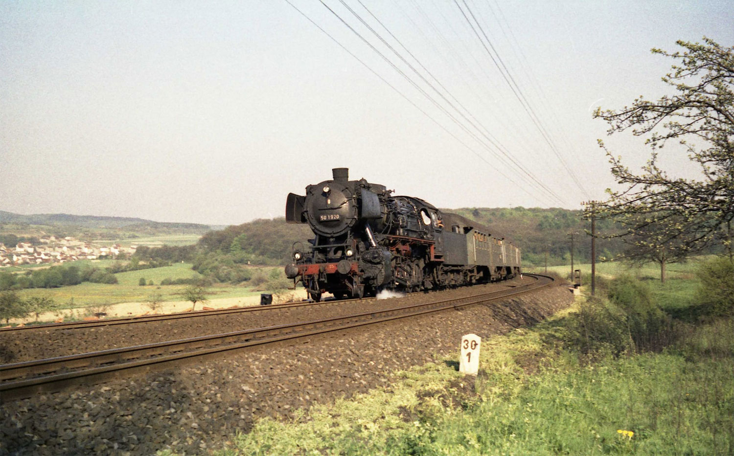 km 50,4 (Tafel) und km 50,5 (Stein) zwischen Bad Camberg und Niederselters - Blick Richtung Frankfurt (Main)