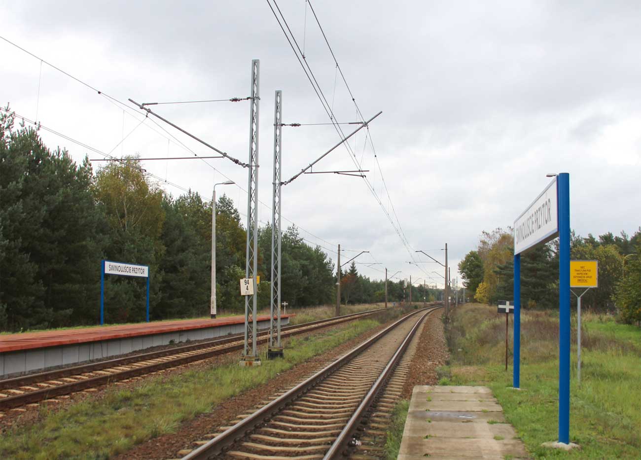 | Świnoujście (Ostswine) | 99,398 | km 11,303 der Strecke Lubiewo (Liebeseele) 0,0 - Świnoujście (Ostswine) 11,303 |
