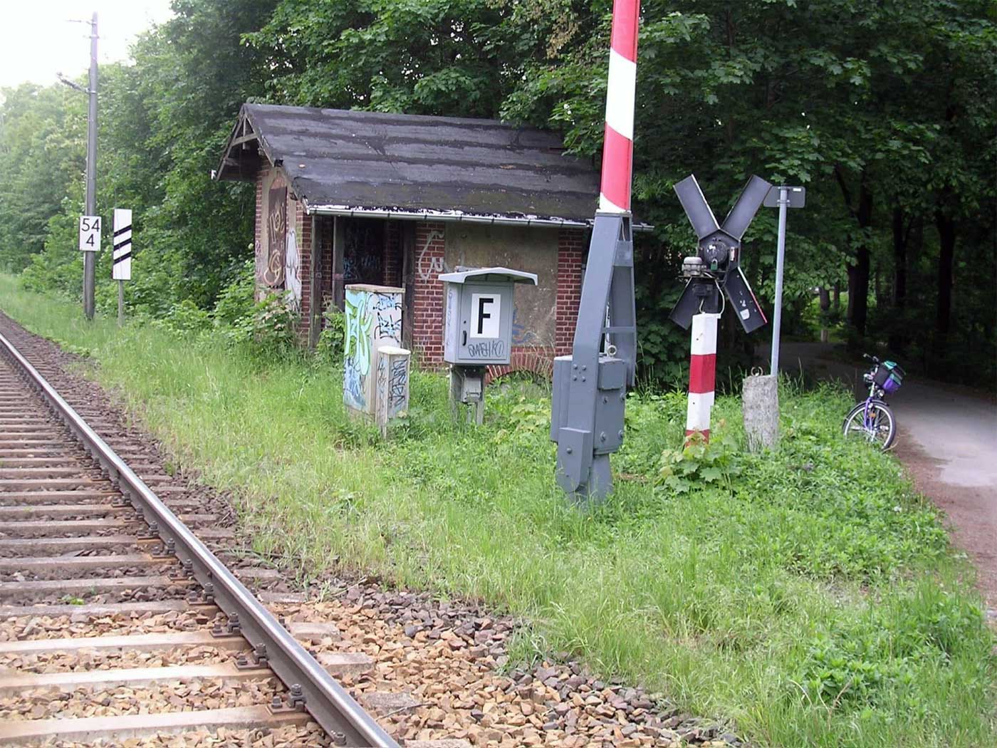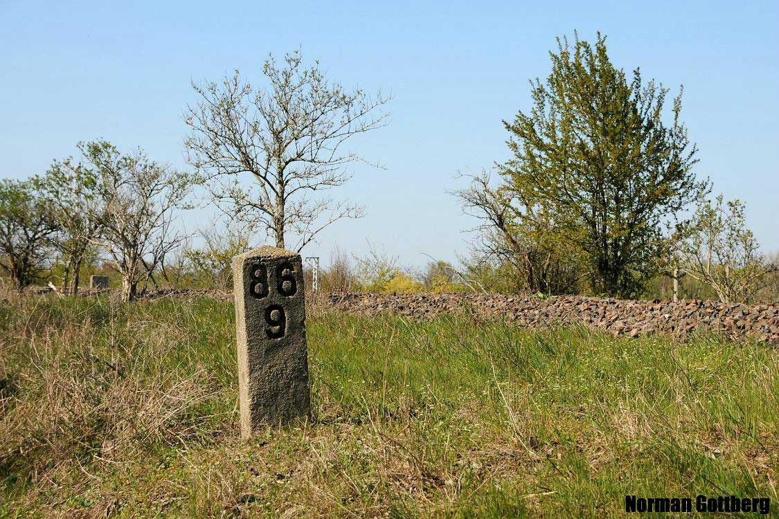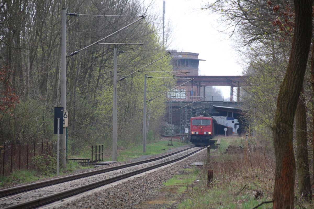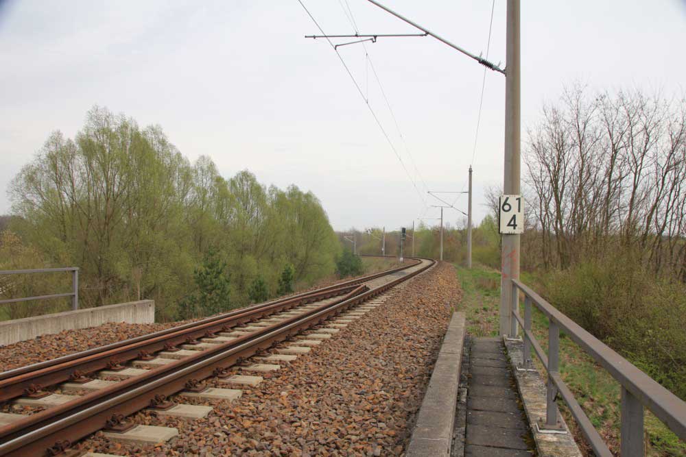 Rechts die Gleise der Strecke Potsdamer Bf 0,0 - Magdeburg Hbf 141,87 - Eilsleben 171,68 - Schöningen 189,00
