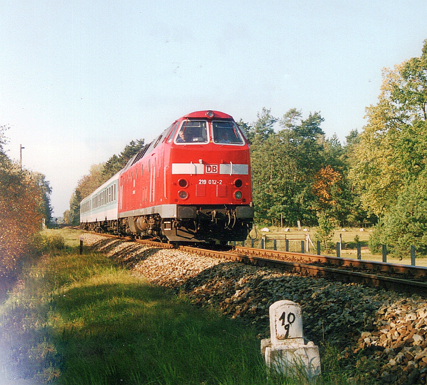 Treuenbrietzen 19,95 km 0,0 der Strecke Treuenbrietzen 0,0 - Belzig 21,6 - Brandenburg Neustadt 56,5 - Rathenow 90,25 - Neustadt (Dosse) 125,6