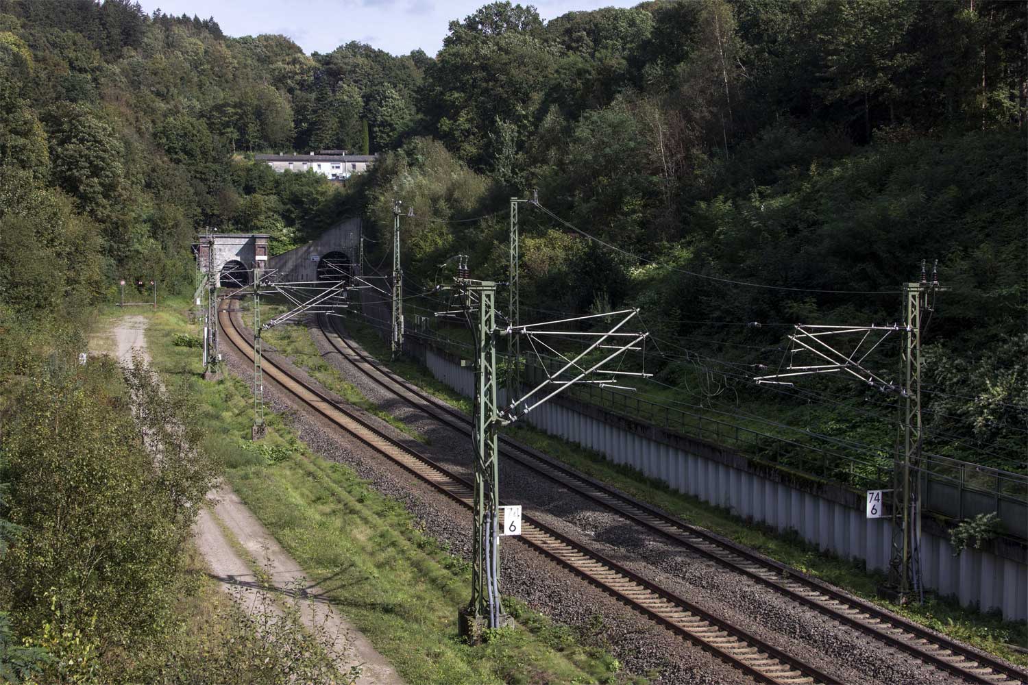 Im Hintergrund die Nordostportale des alten und neuen Buschtunnels
