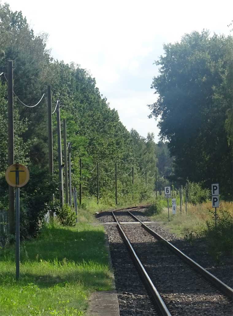 Rechts die Strecke Rheinsberg (Mark) 0,0 - Stechlinsee 10,10