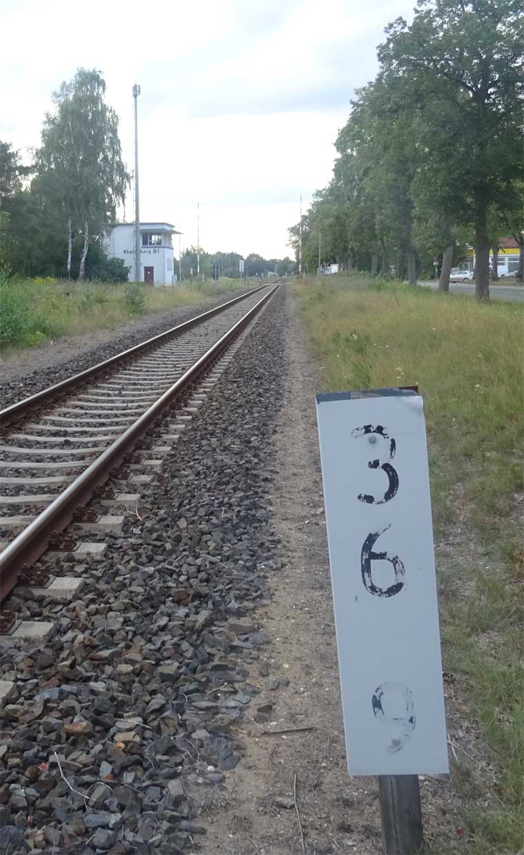 | Rheinsberg (Mark) | 37,58 | km 0,0 der Strecke Rheinsberg (Mark) 0,0 - Stechlinsee 10,10 (erst seit 1958) |