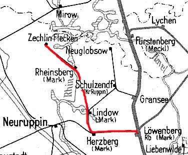 | Lindow (Mark) | 21,26 | Verbindungsstrecke Lindow (Mark) 0,0 - Schulzendorf 8,9 (Strecke Gransee - Schulzendorf - Neuglobsow) |