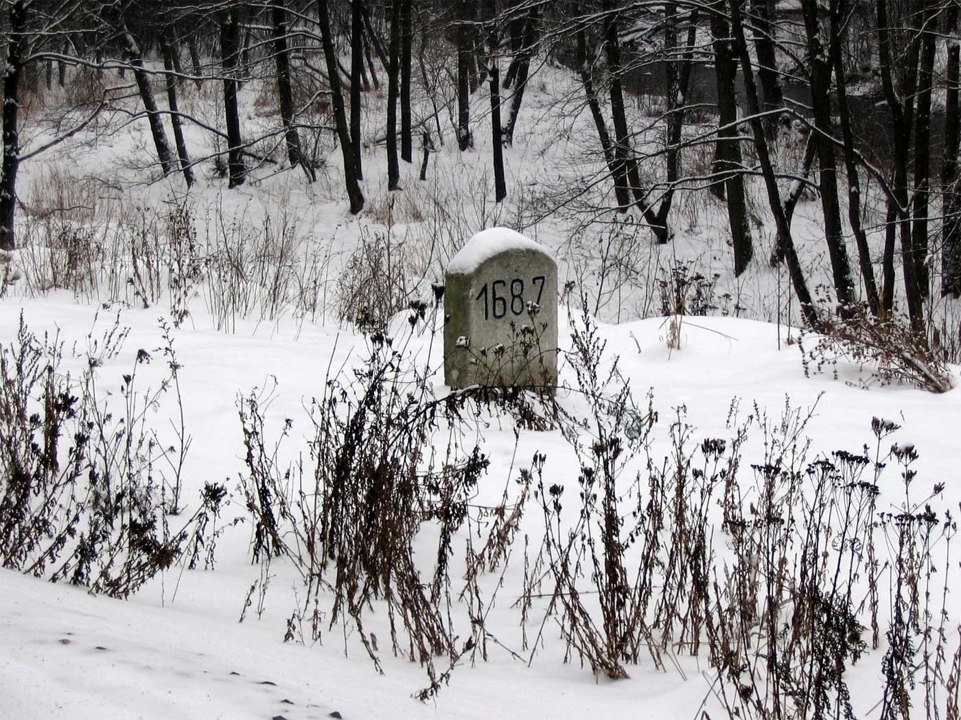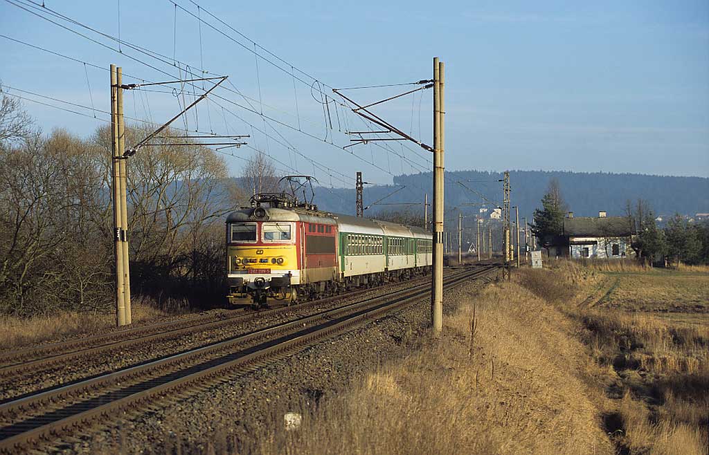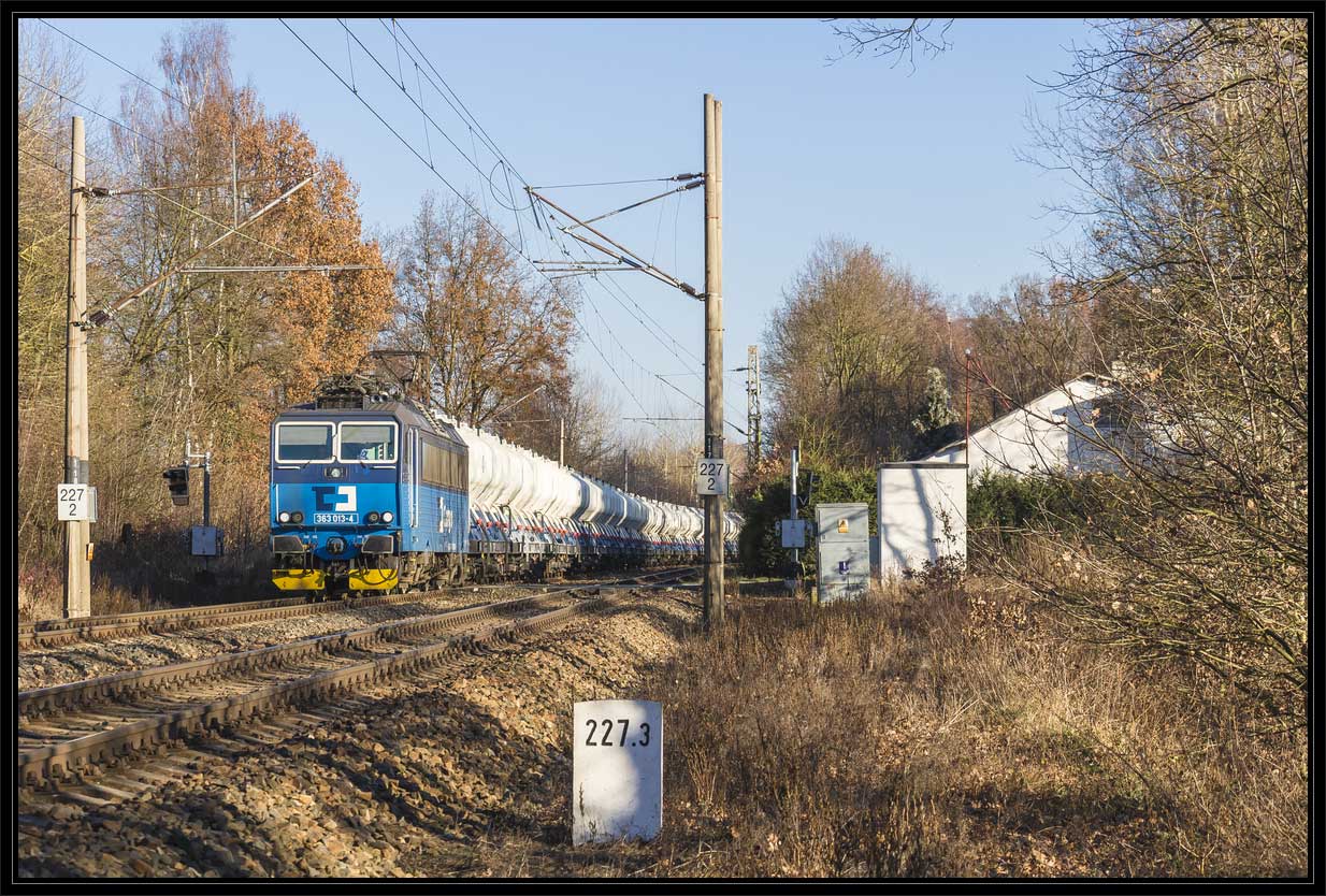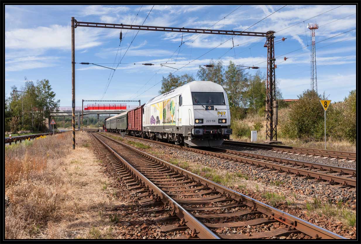 km 233,3 (Stein) und km 233,4 (Tafel) zwischen Tršnice (Tirschnitz) und Cheb (Eger) - Blick Richtung Cheb (Eger)