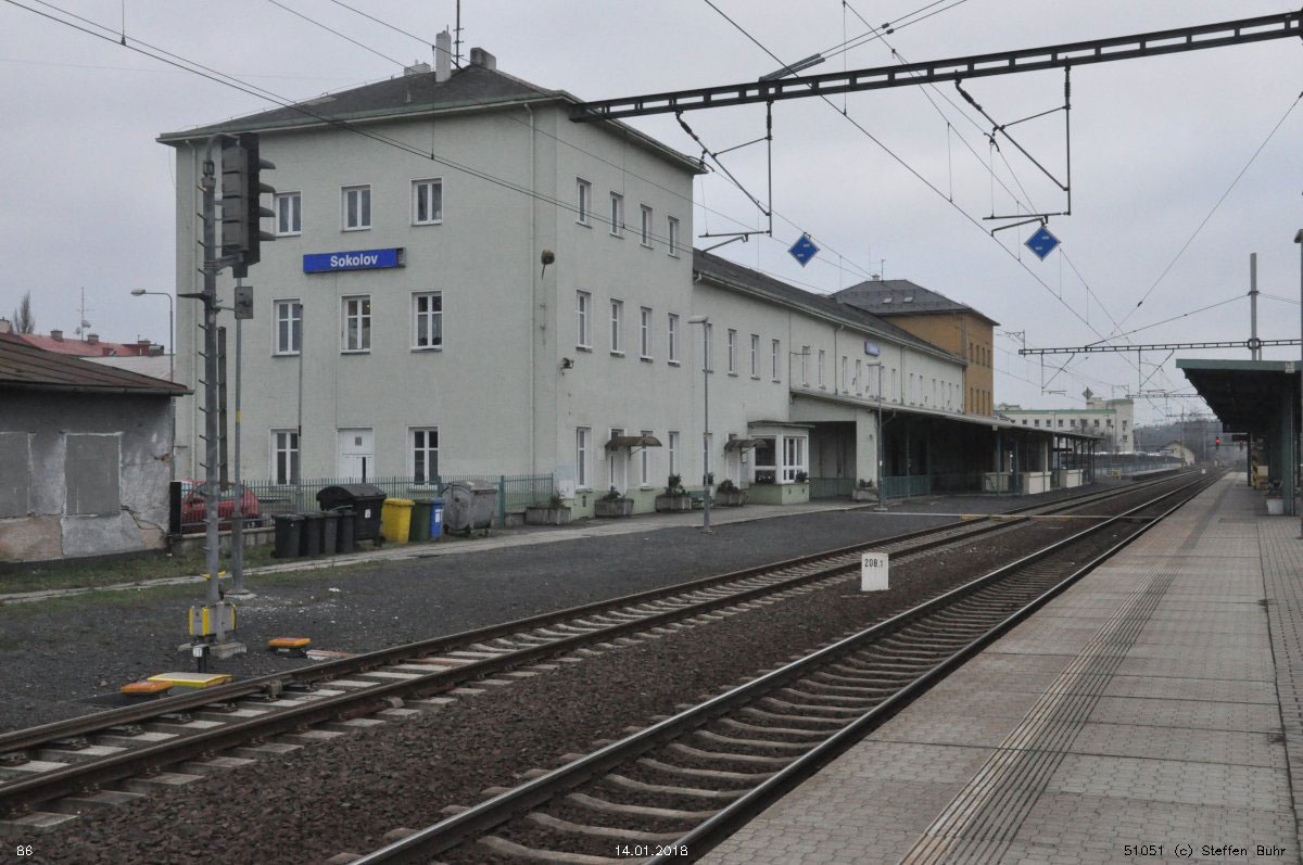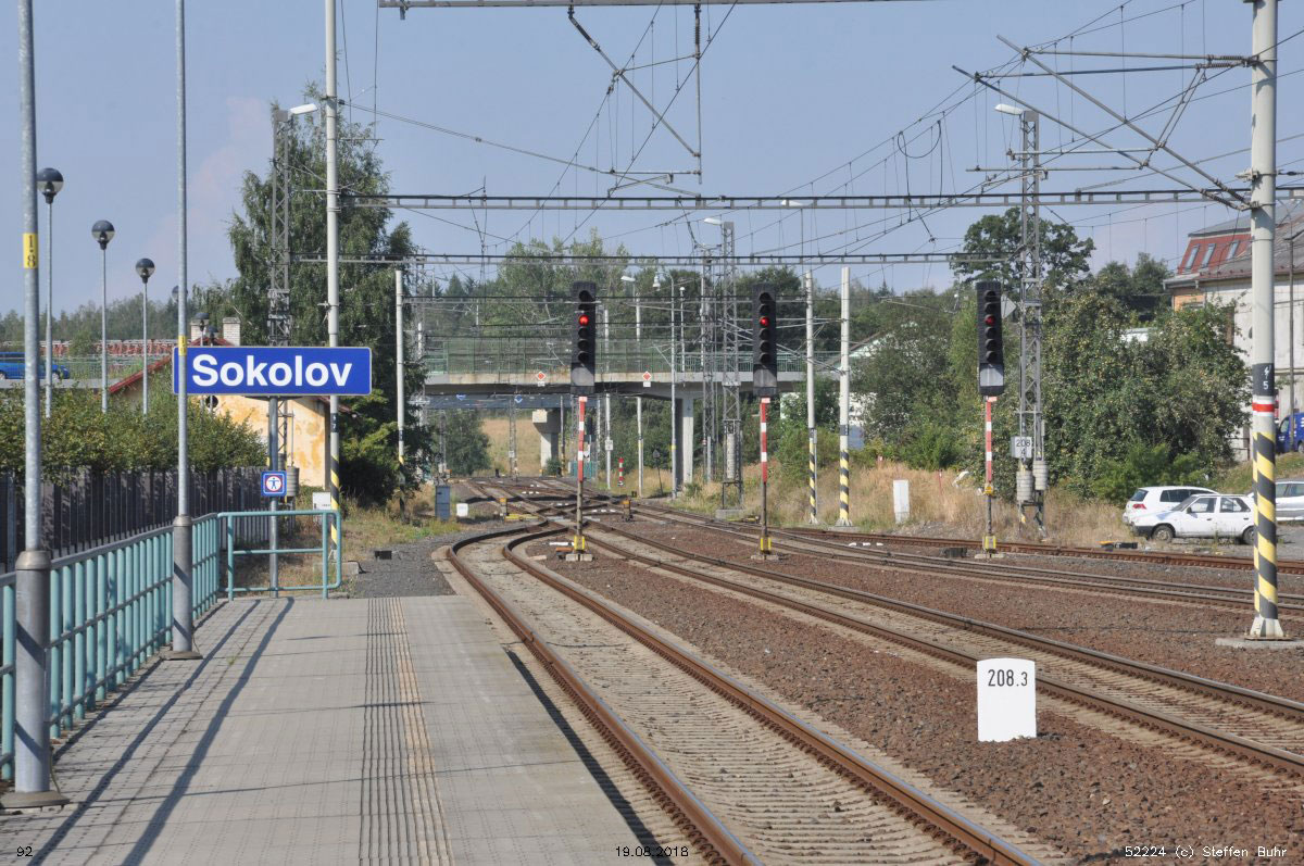 km 0,0 der Strecke Sokolov [Falkenau (Eger)] 0,0
