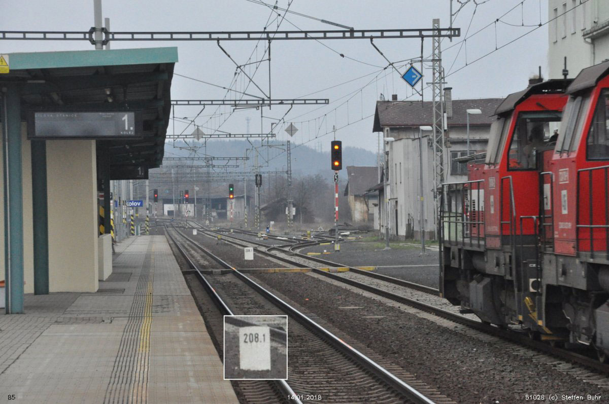 Stand der Kilometrierung: 2010 Praha-Bubny (Prag-Bubna) 0,423 - Chomutov (Komotau) 125,173 -