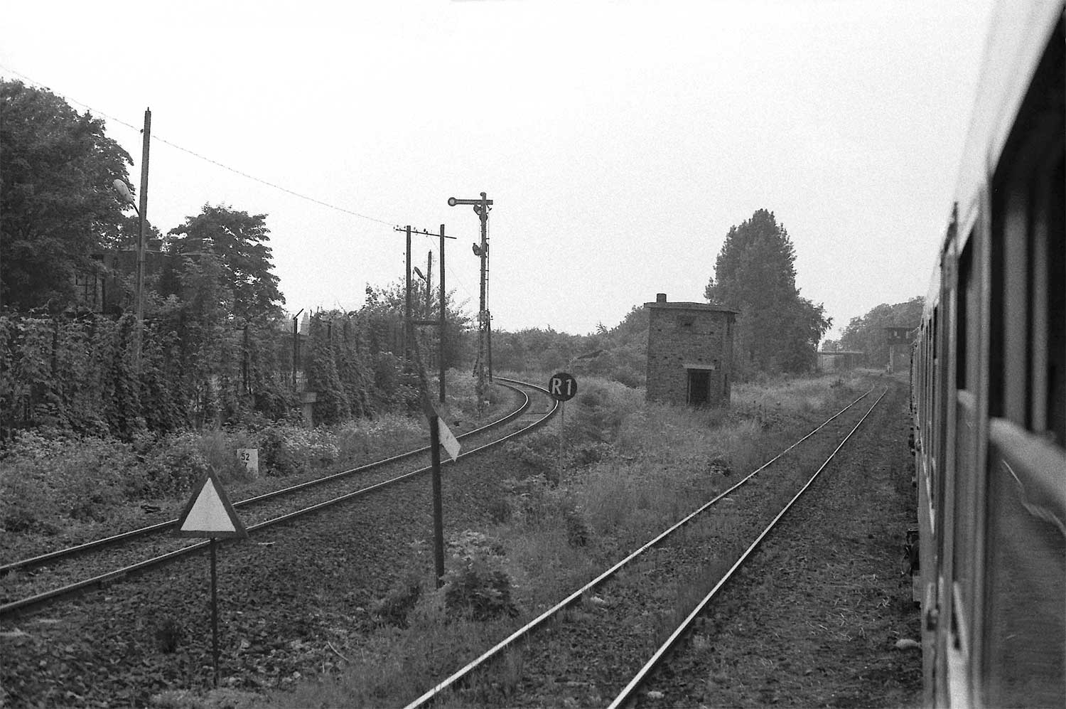 Neben dem Zug noch zu erahnen: km 102,5 der Strecke