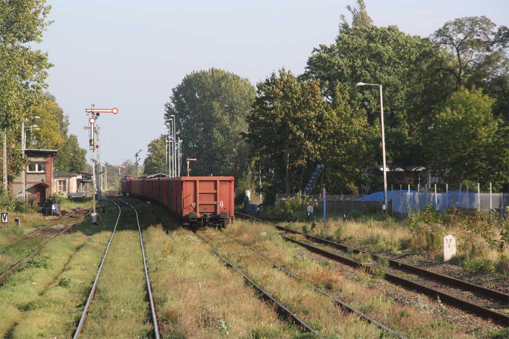 | Grünberg (Schles) | 53,34 | km 150,87 der Strecke Breslau Hbf 0,06 - Glogau 95,97 - Reppen 220,47 - Küstrin Neust. Hbf 252,09 - Stettin Hbf 352,44 |