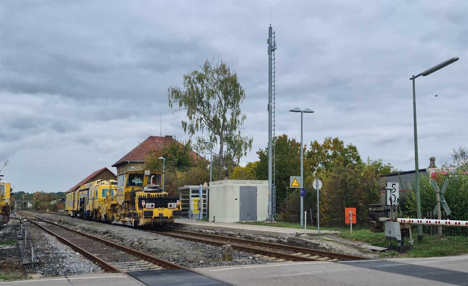 Crailsheim 0,0 - Landesgrenze Baden-Württemberg/Bayern (auch Grenze BD Stuttgart/Nürnberg) km 10,310 = (km 80,072 - Ansbach 43,72 - Nürnberg Hbf 0,0)