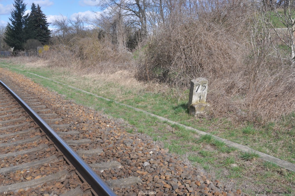 | ► | km 45,24 der abgehenden Strecke Berlin Stettiner Bf -0,28 - Eberswalde 45,24 - Angermünde 70,67 - Stettin Hbf 134,70 - Belgard 280,01 - Danzig Hbf 502,55 mit weiterlaufender Kilometrierung (Streckenverzweigung mit gemeinsamen Nullpunkt Berlin Stettiner Bf) | |