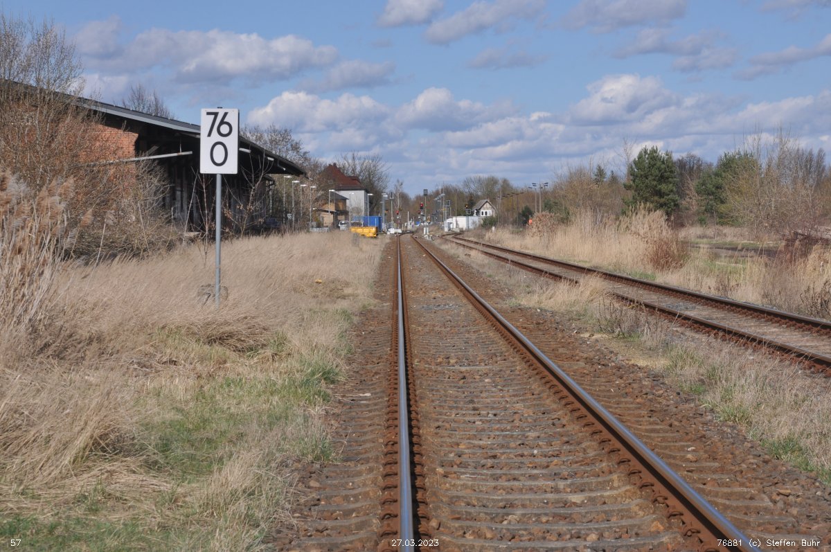 | Booßen | 124,98 | km 24,39 der Strecke (Küstrin-Kietz 0,0) - Abzw Wüste Kunersdorf 20,60 - Booßen 24,39 - Frankfurt (Oder) Rbf 27,78 |