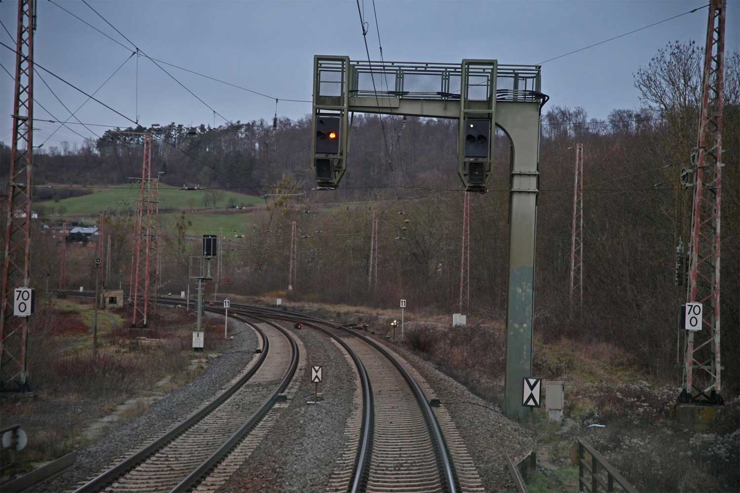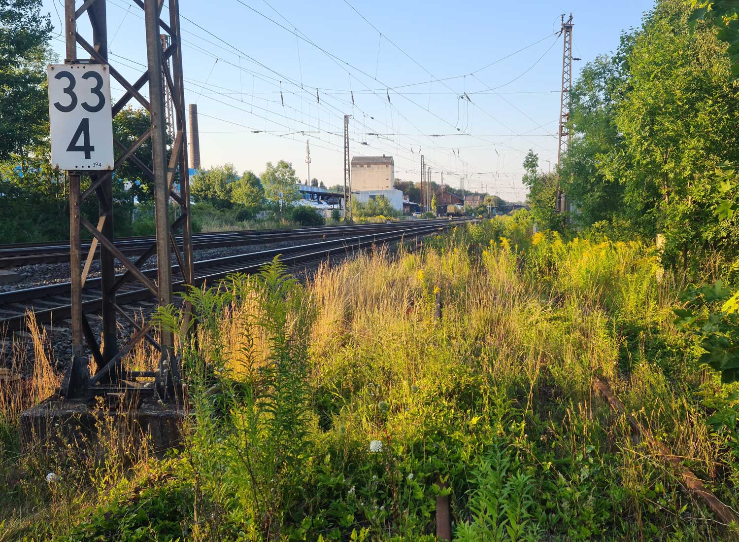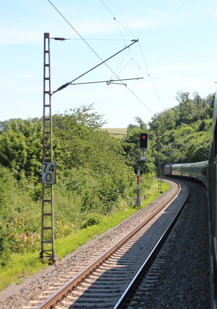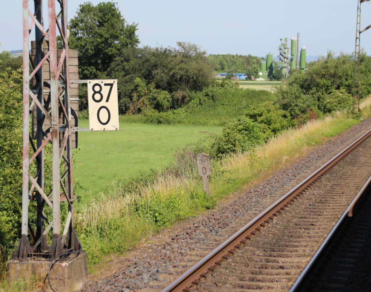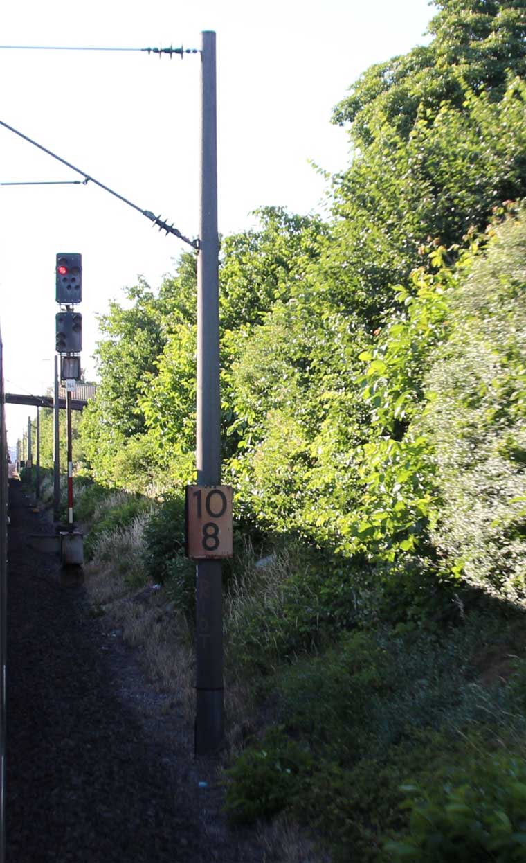 km 1,2 (rechts am Oberleitungsmast) gehört zur Strecke