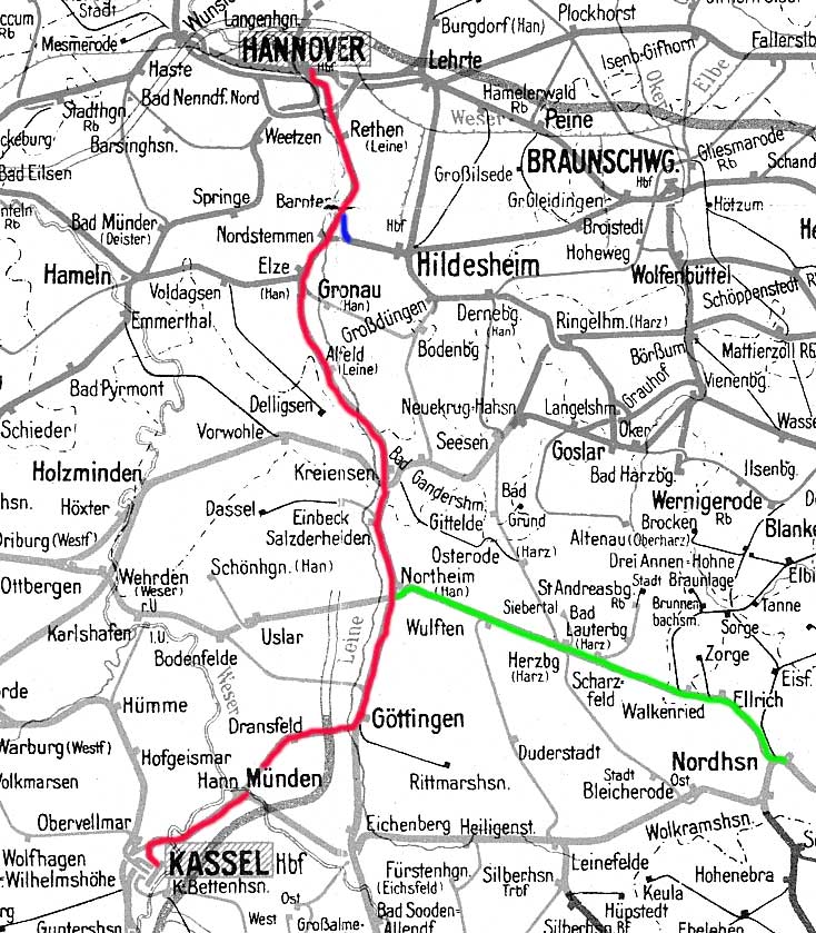 Mit Inbetriebnahme der Schnellfahrstrecke Hannover - Würzburg zwischen 1979 und 1991 kam es im Bereich zwischen Hannover und Göttingen sowie im Bereich