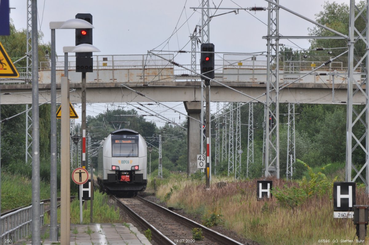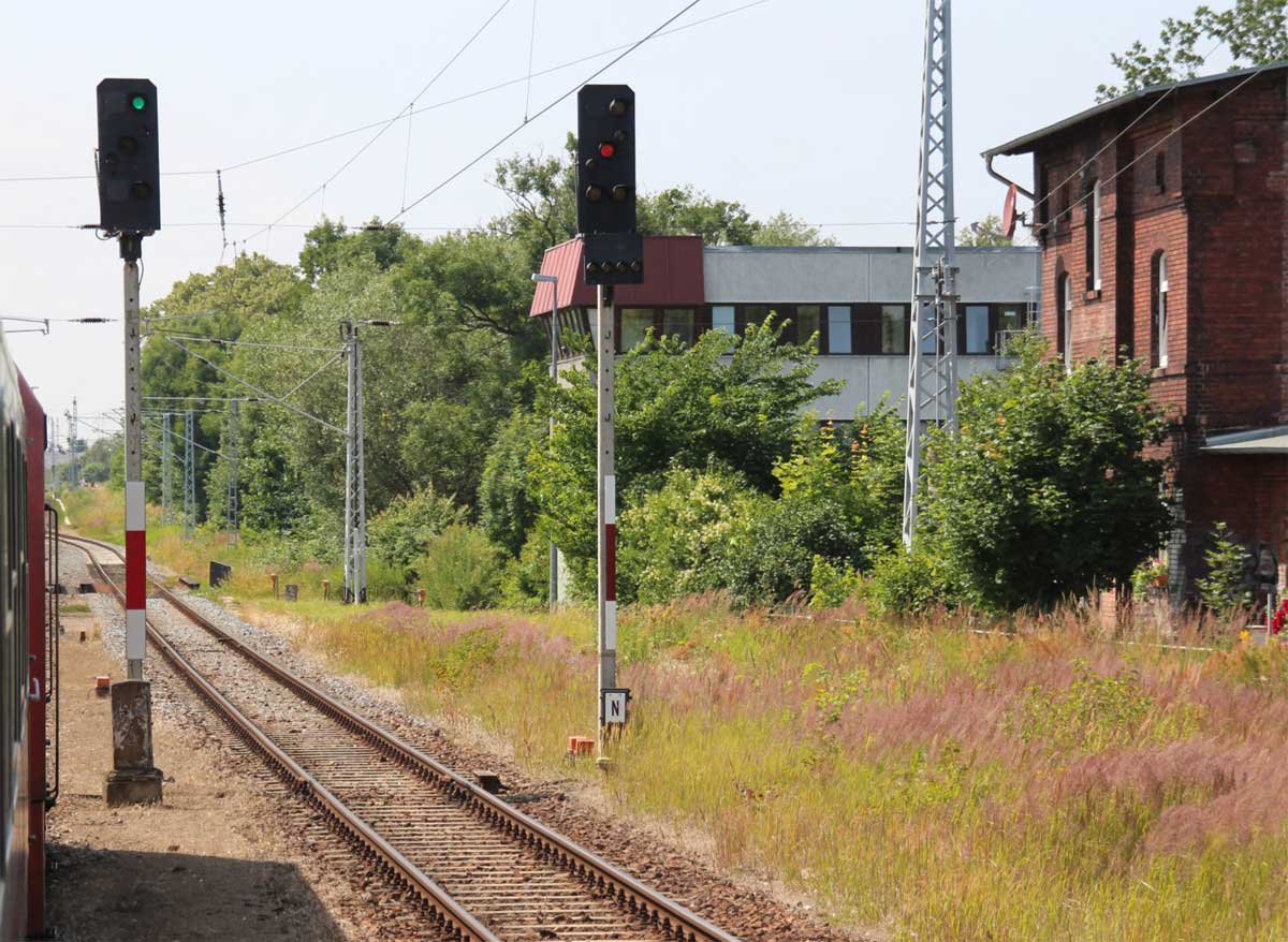 | km 240,80 der Strecke (Berlin Stettiner Bf -0,28) - Angermünde 70,67 (Abzw. von Strecke 2) - Pasewalk 132,25 - Ducherow 163,19 - Stralsund 240,80 | ||