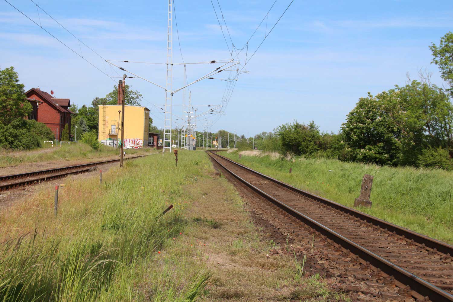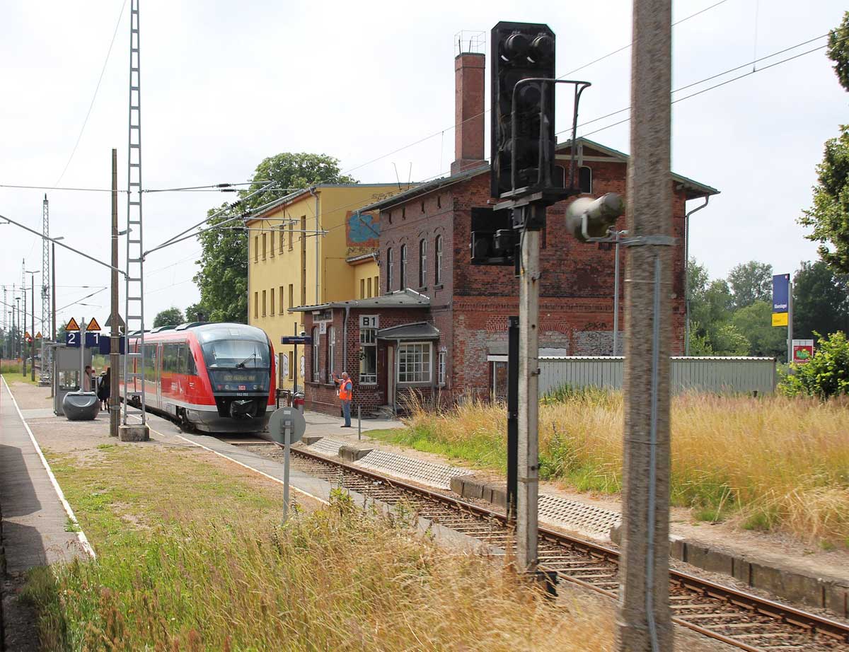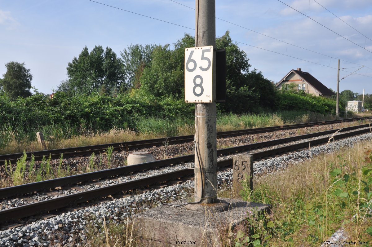 | km 223,07 der Strecke Berlin Eberswalder Straße 0,01 - Oranienburg 27,41 - Löwenberg (Mark) 44,25 - Neustrelitz 98,53 -Neubrandenburg 133,69 - Stralsund 222,64 - Saßnitz 272,72 - Saßnitz Hafen 274,46 | ||