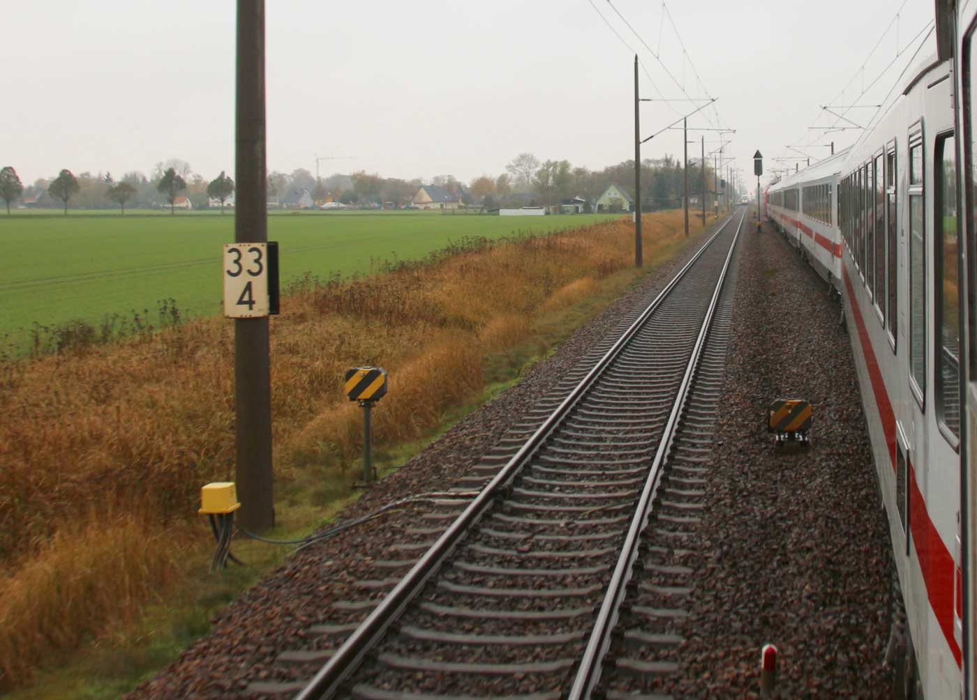 km 70,8 zwischen Rostock-Kassebohm und Abzw Rostock Warnowbrücke West - Blick Richtung Stralsund