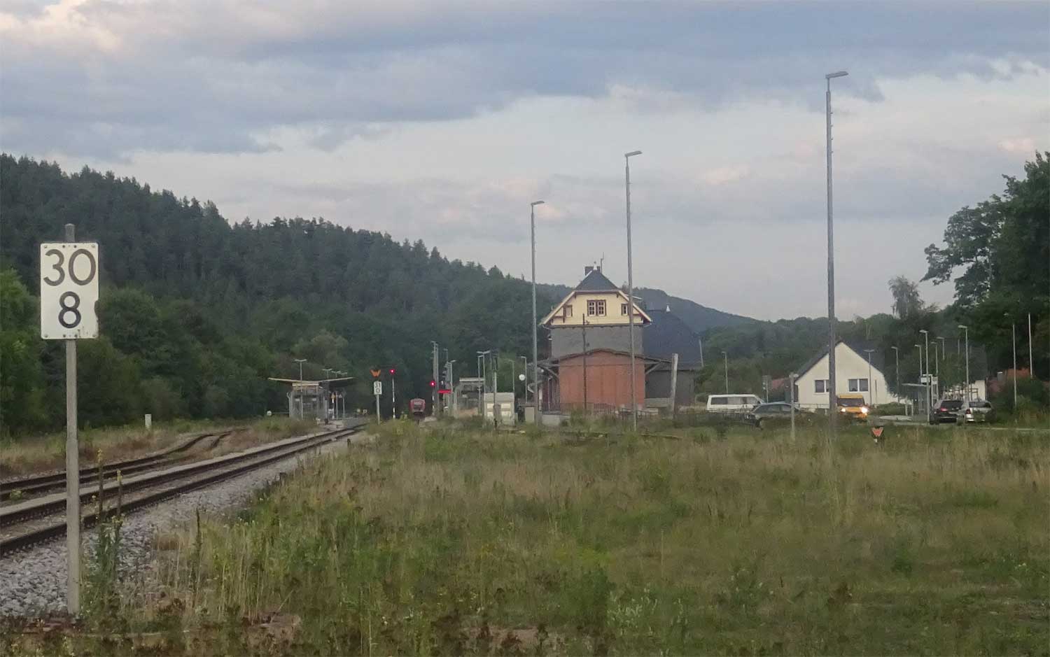 km 0,3 (rechts im Gebüsch) in Arnstadt Hbf