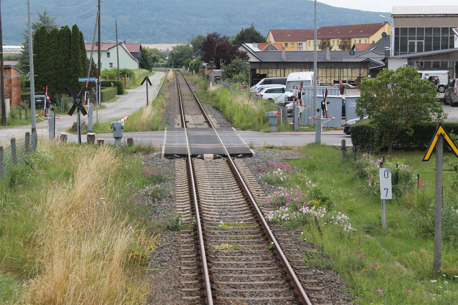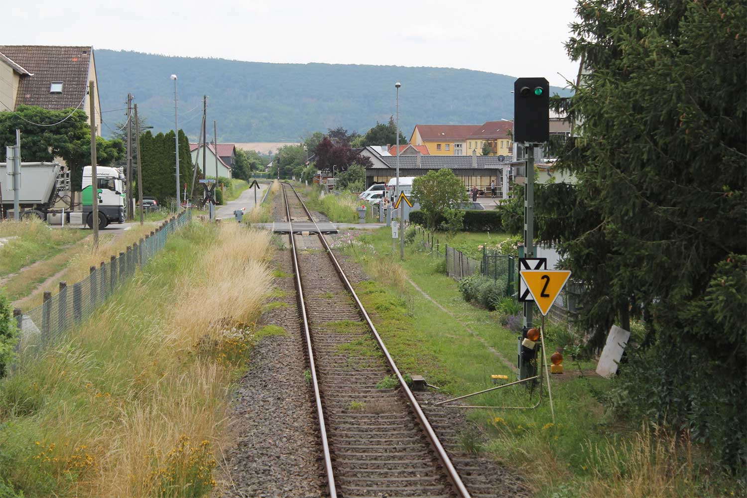 km 0,0 in Berga-Kelbra - Blick Richtung Streckenanfang