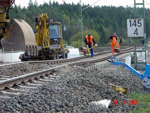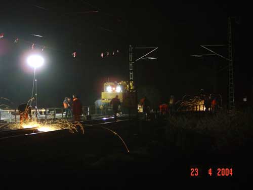 Verlegen der Gleise auf der neuen Brücke (Foto: Dirk Ammon 2004) |