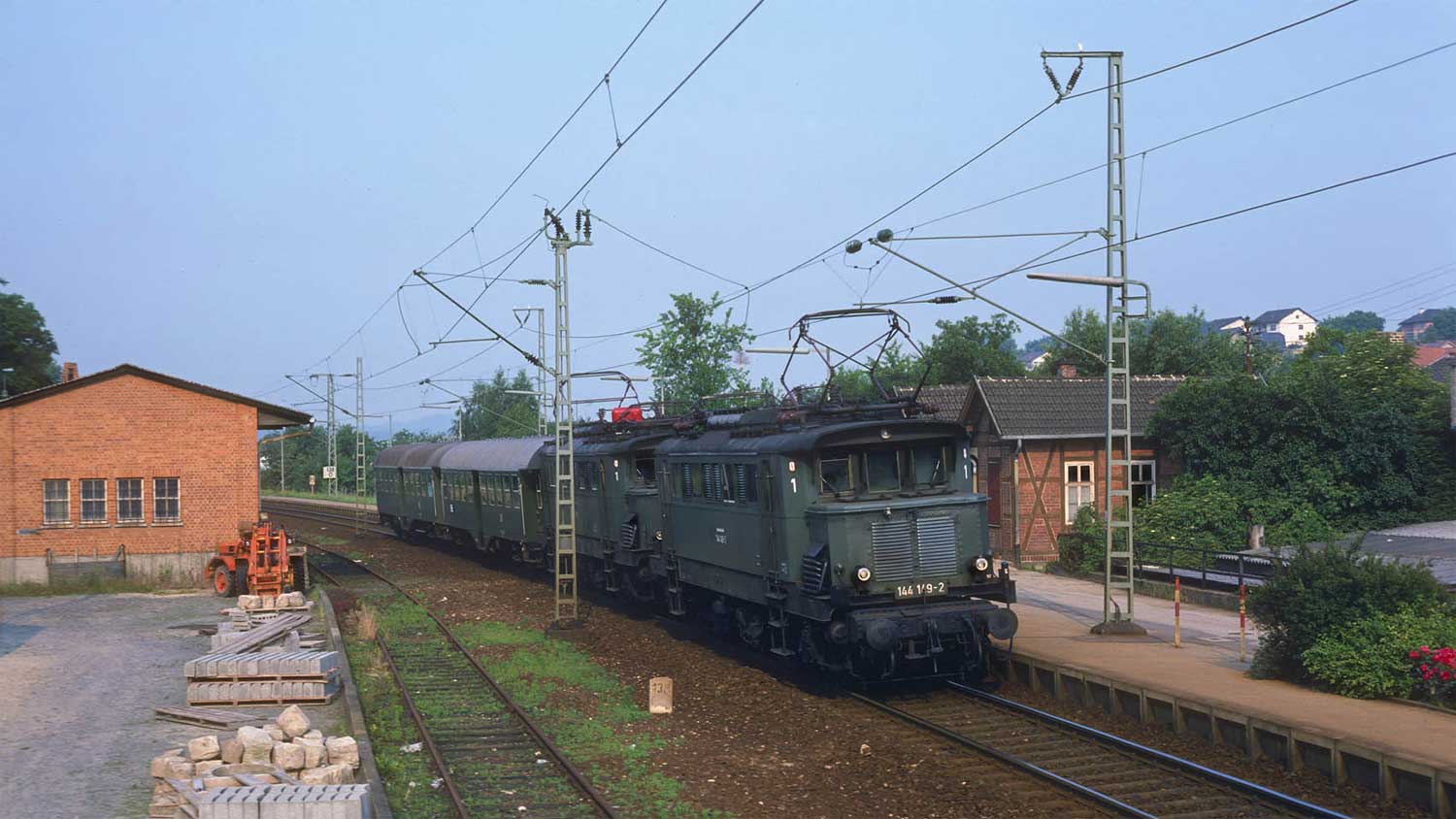 E 531 mit 01 128 verlässt am 05.06.1968 den Bf Lichtenfels in Richtung Hof
