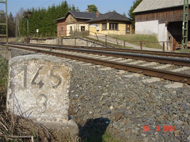 km 145,9 in Seehof Im Hintergrund die Reste der Grundmauern des ehemaligen Stellwerkes (Foto: Dirk Ammon 2004) |