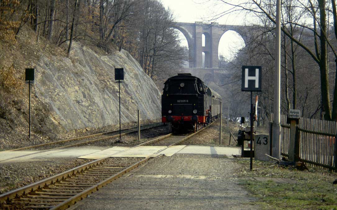 | km 33,48 der Strecke Gößnitz -0,374 - Gera Süd 33,48 (ab 1968 wegen Umverlegung im Raum Ronneburg) | ||