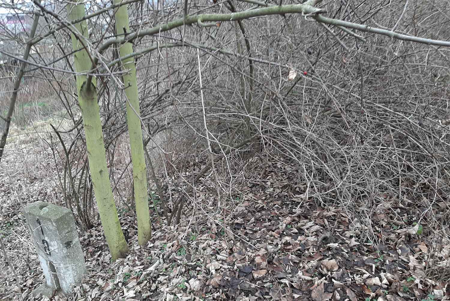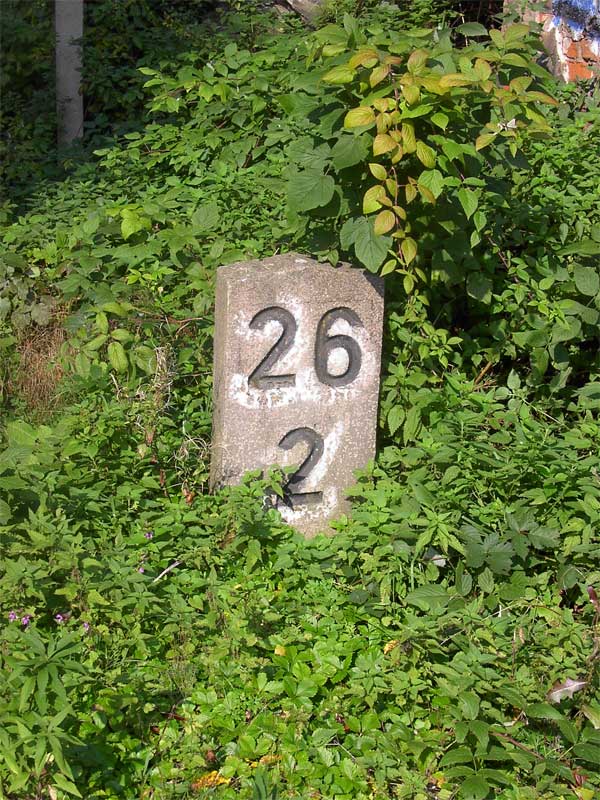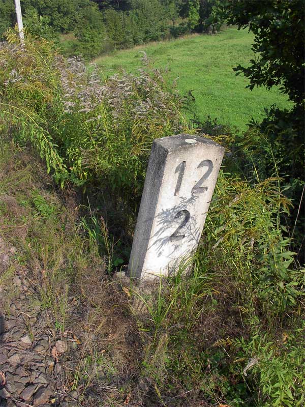 km 58,0 (Tafel) und km 58,1 (Stein) in Kürbitz - Blick Richtung Gera Süd