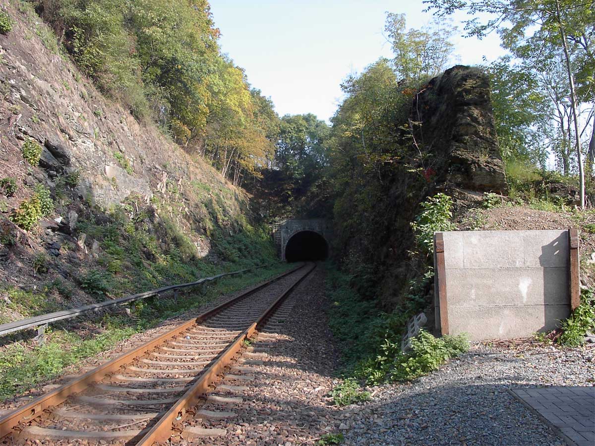 km 53,4 (Tafel und Stein) in Plauen (Vogtl) unt Bf - Blick Richtung Gera Süd