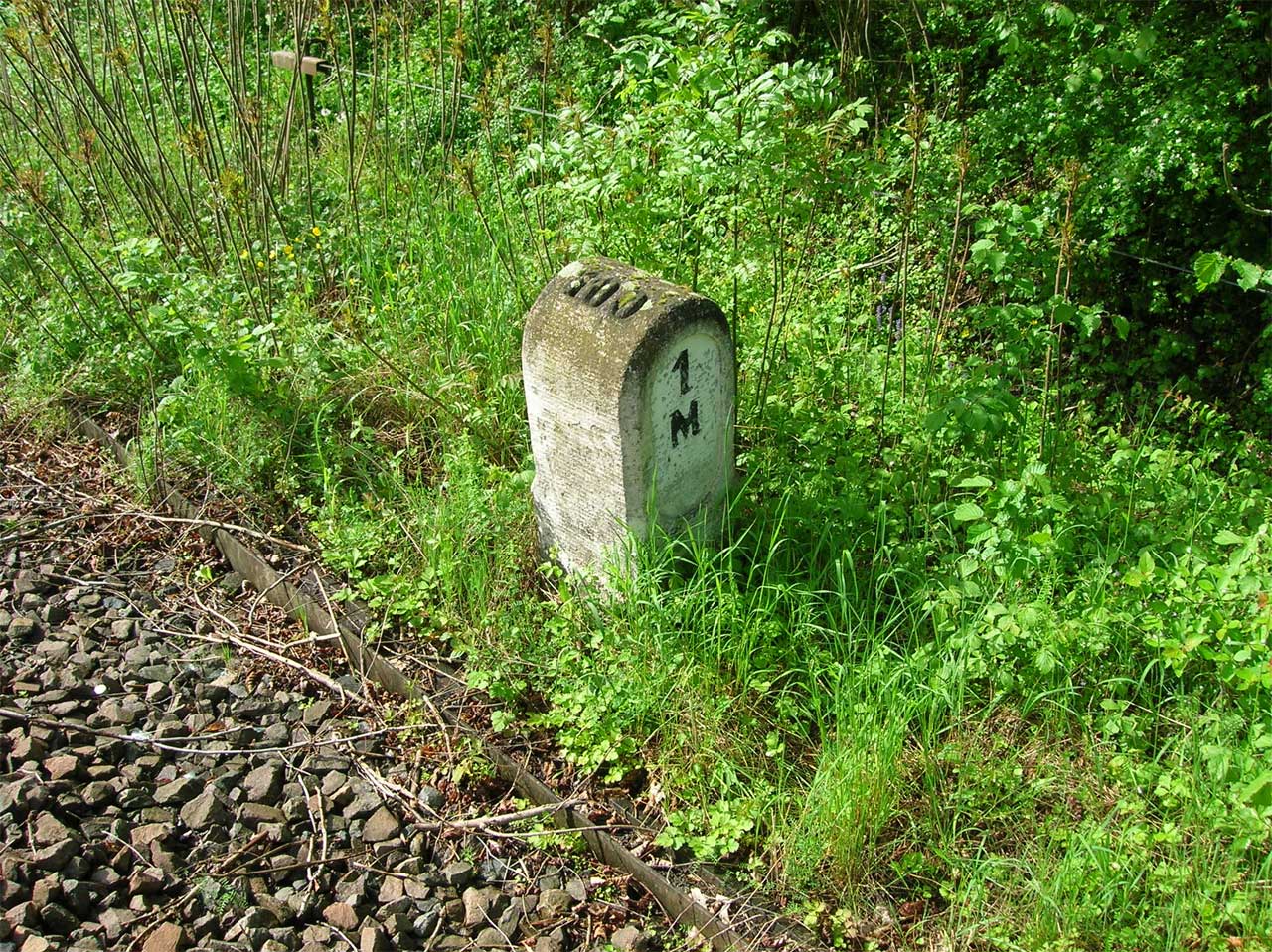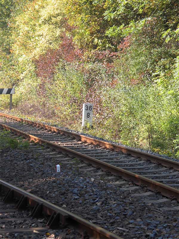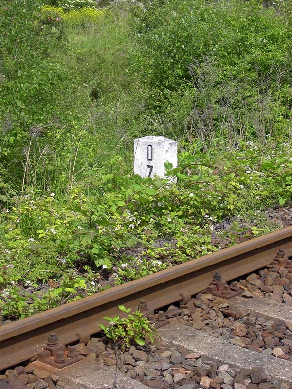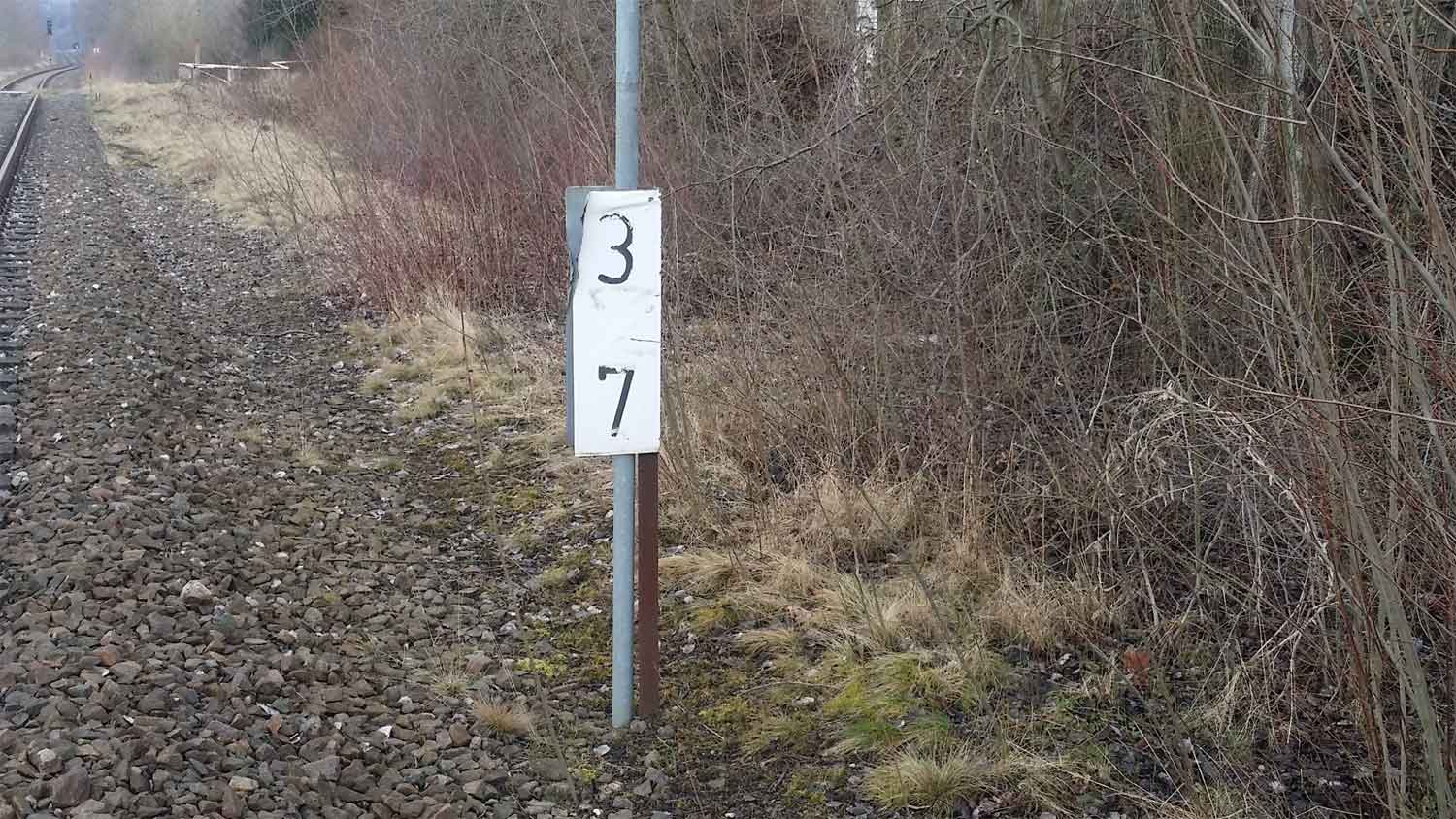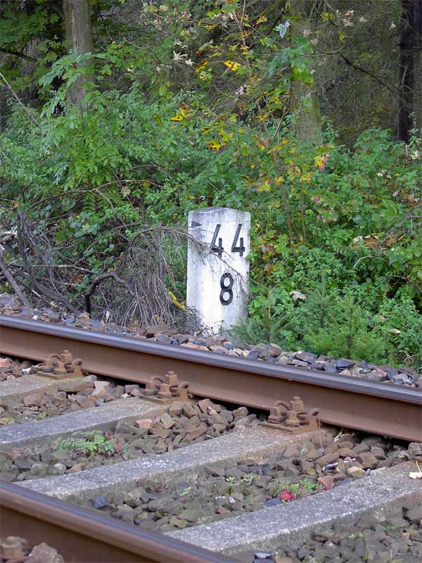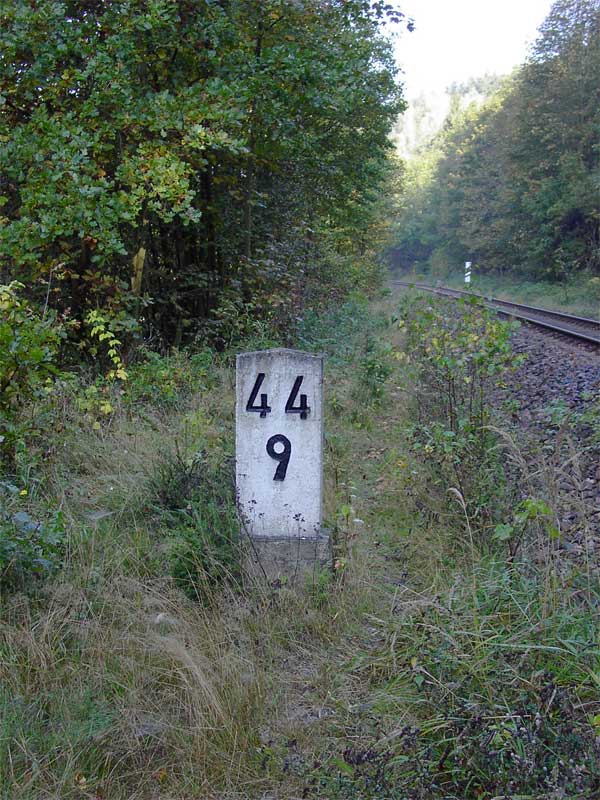km 53,6 (Stein und Tafel) in Plauen (Vogtl) unt Bf - Blick Richtung Weischlitz
