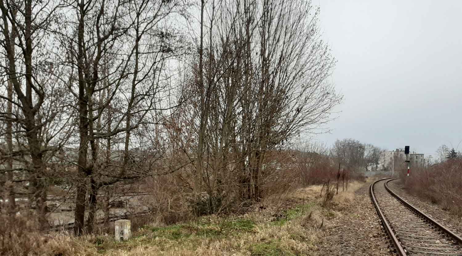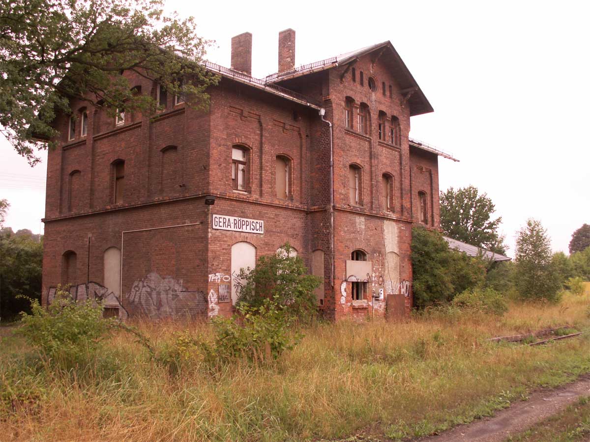 Blick vom alten Bahndamm der Strecke Wolfsgefärth - Weischlitz (WWz) in Richtung Bf Gera-Röppisch (früher Wolfsgefärth).