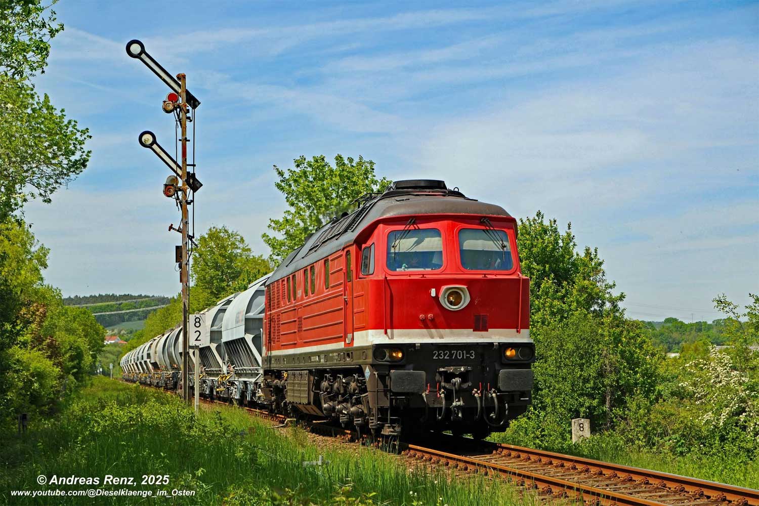 km 58,7 in Weischlitz - 232 673 und 232 347 kommen mit ihrem Zug aus Tschechien,