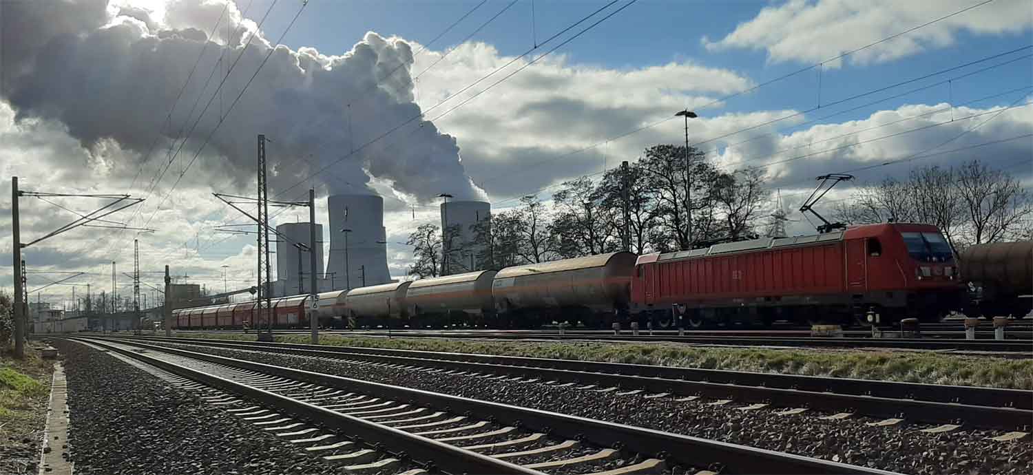 Grenzzaun und Grenze (Grenzpfahl vor der Lok)