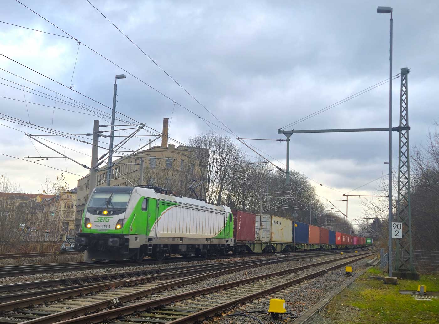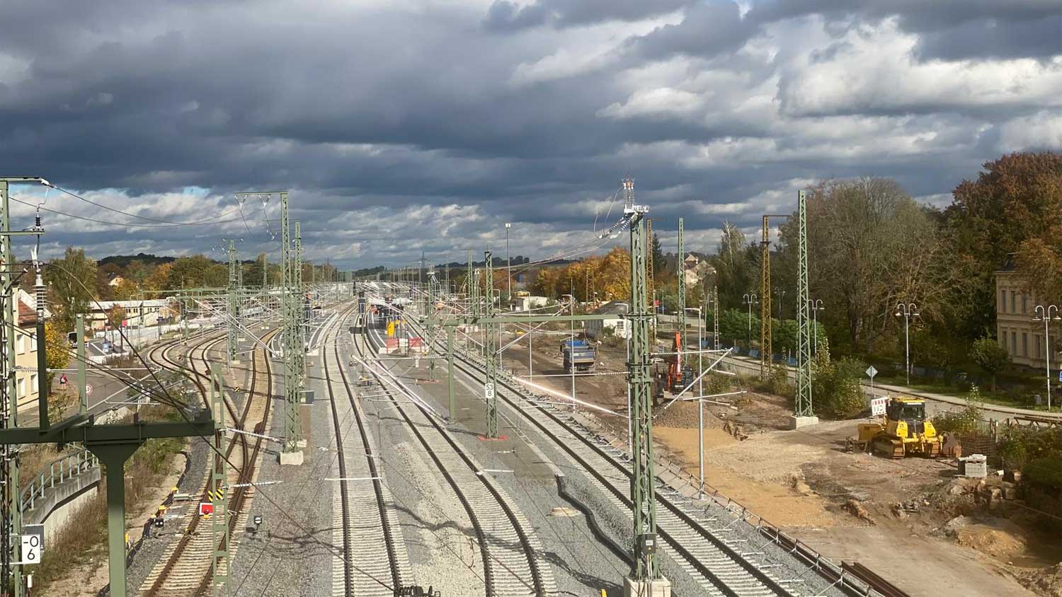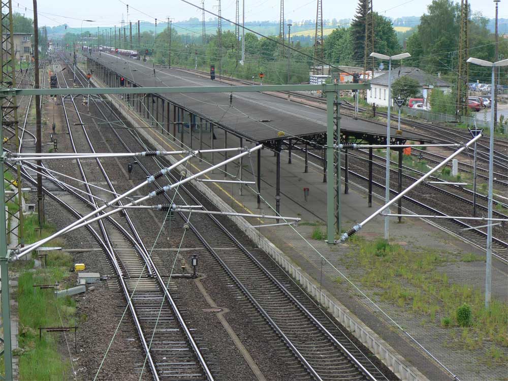 km 163,8 (vor dem Oberleitungsmast) in Hof Hbf