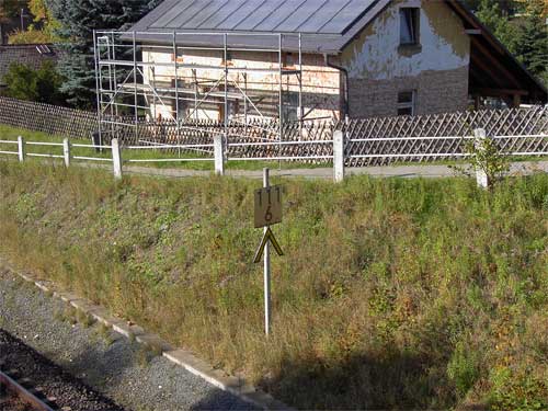 km 0,6 gehört zur Strecke Hof Hbf 0,0 - Naila 18,75 - Marxgrün 22,93 - Bad Steben 26,99