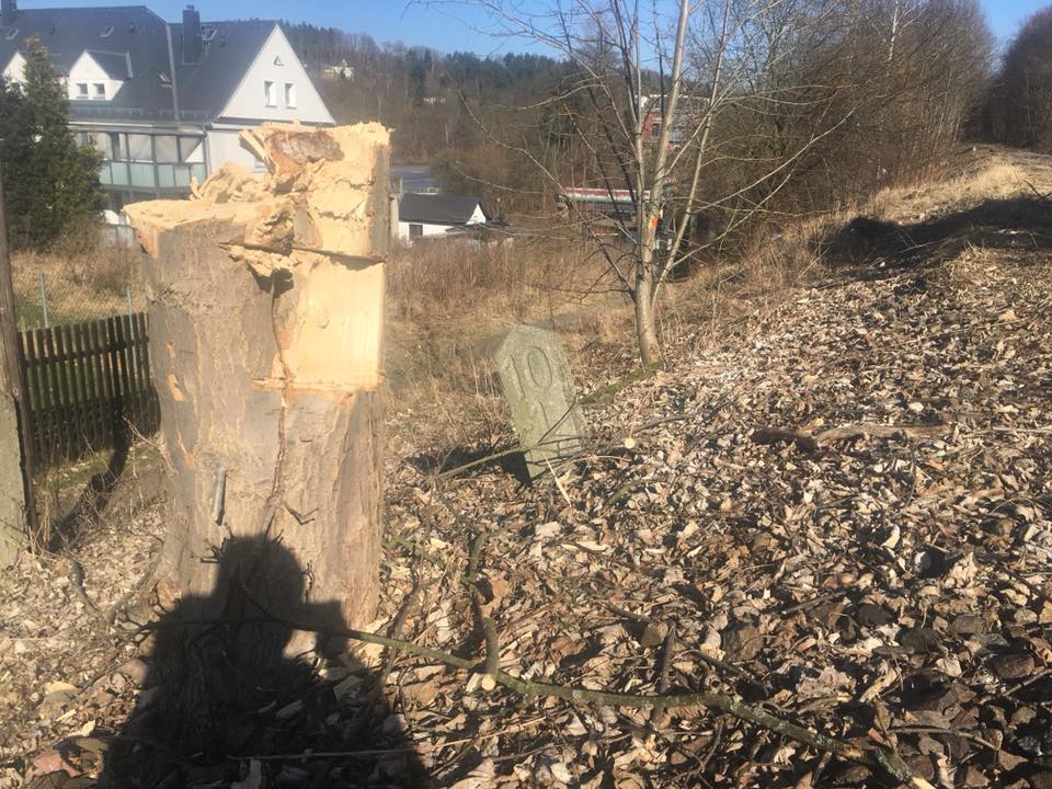 Die Lage des Steines entspricht der ehemaligen Kilometrierung Brunn (Sachs) - Greiz. Er wurde zur Abstützung des Zaunes verwendet.