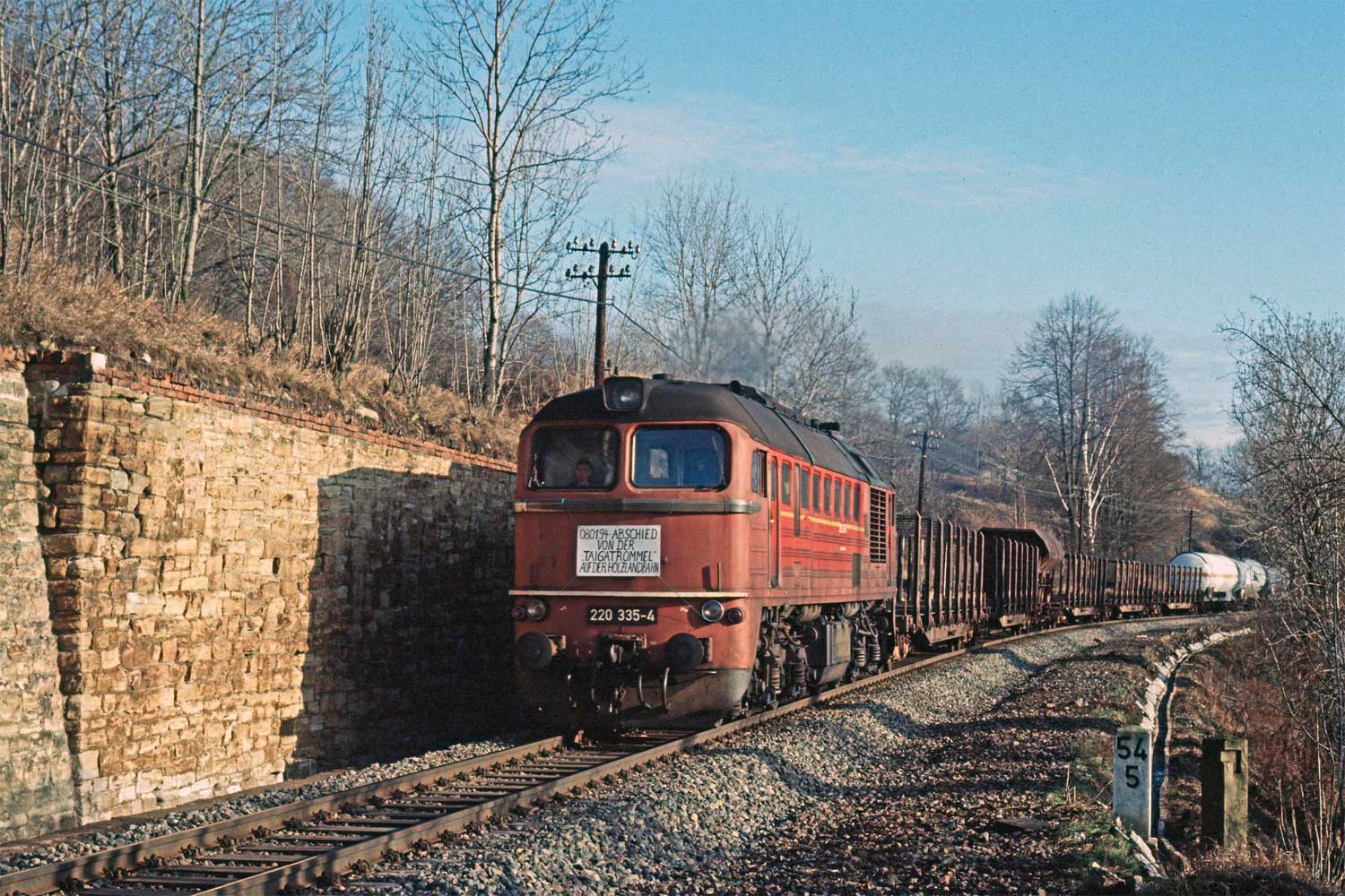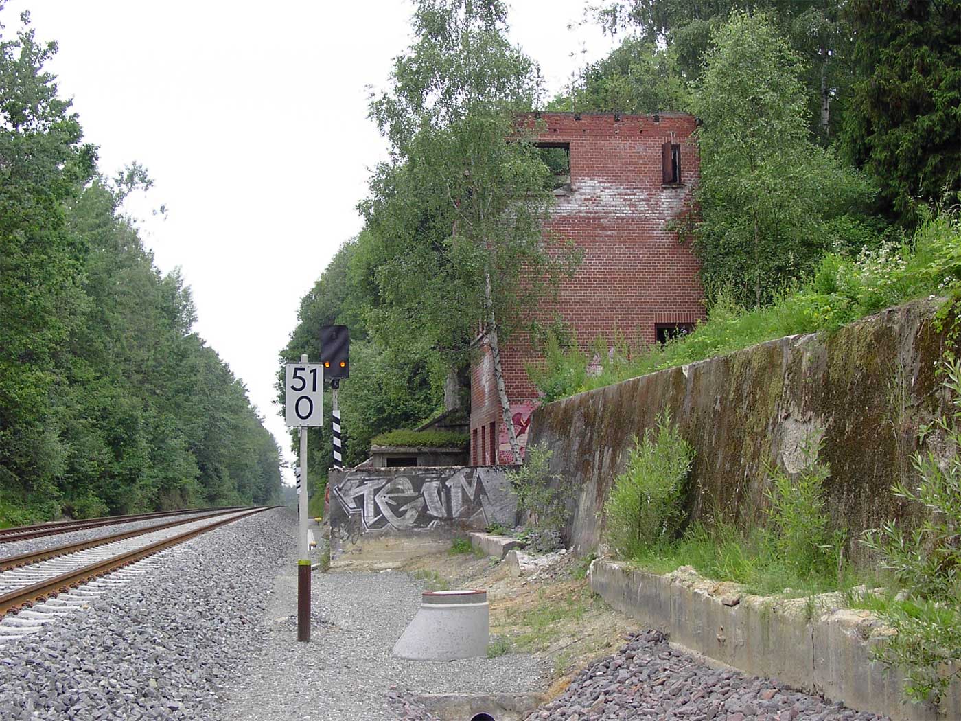 Links noch zu erkennen km 72,6 der Strecke