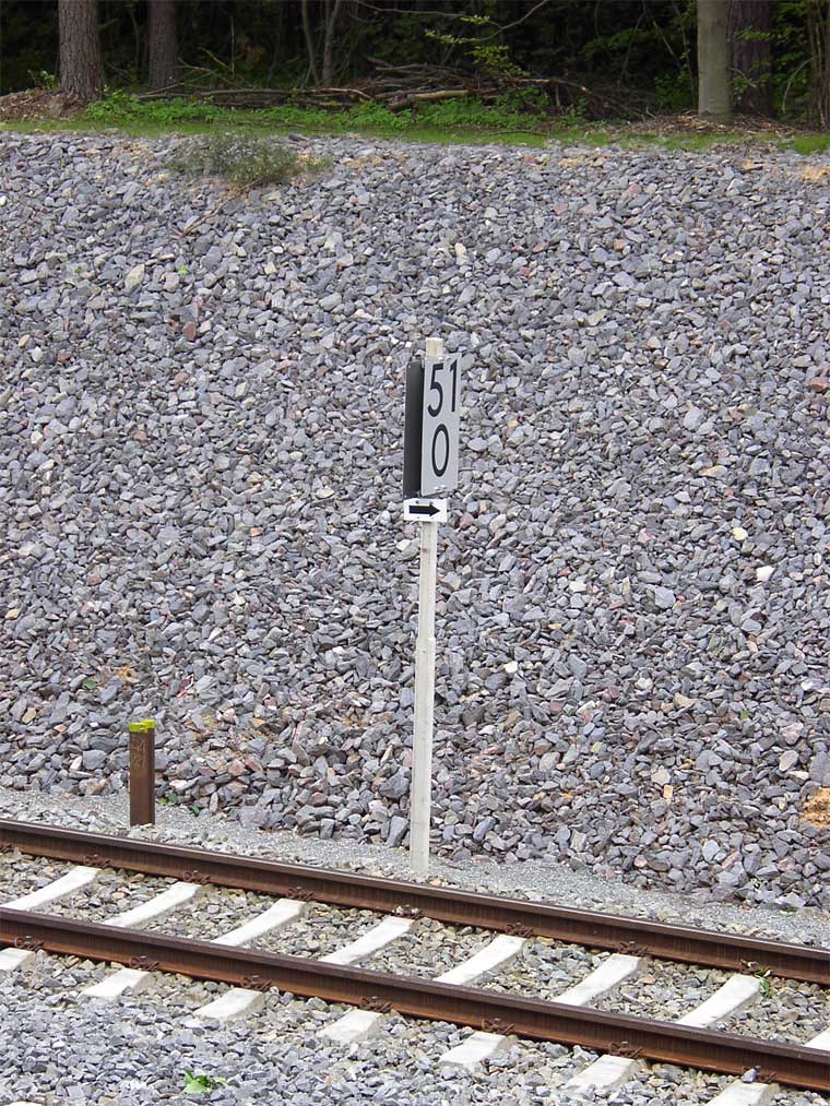 km 86,5 (Stein rechts) und km 86,6 (Tafel) gehören zur Strecke