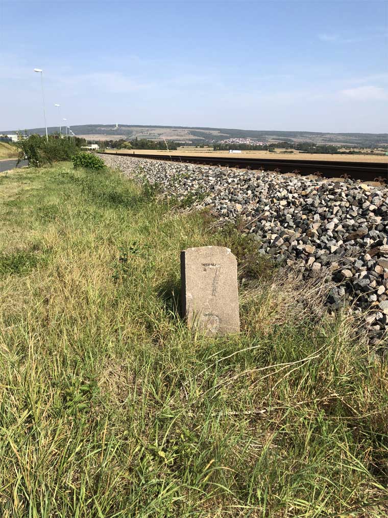 km 1,0 (Stein und Tafel) zwischen Weimar und Weimar West - Blick Richtung Weimar Berkaer Bf - (Kranichfeld)
