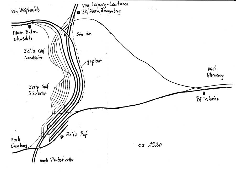| Abzw Unterschwöditz | 27,53 | Verbindungsgleise zum Gbf Zeitz Nordseite bzw. Südseite |