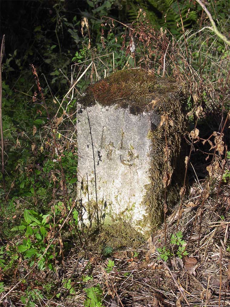 Auf der anderen Gleisseite bei km 6,4 steht ein Stein mit der Aufschrift 45. Es handelt sich um einen Kabelmerkstein der Deutschen Post.