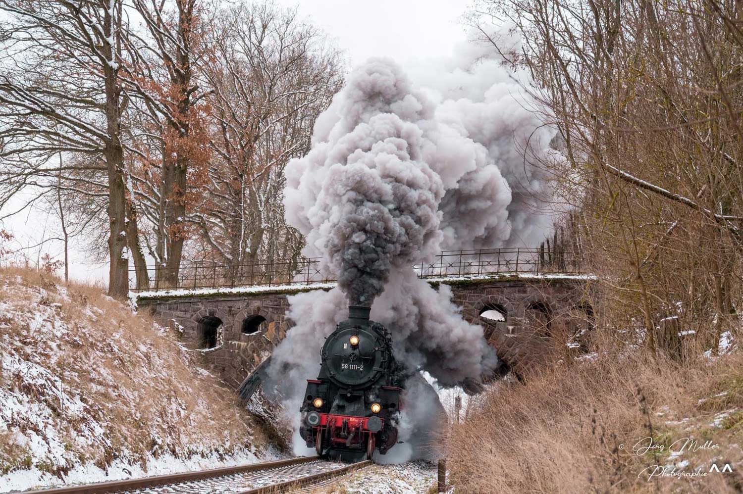 km 28,7 bei Niederschmalkalden - 58 311 mit einen Fotogüterzug am 21.02.2009